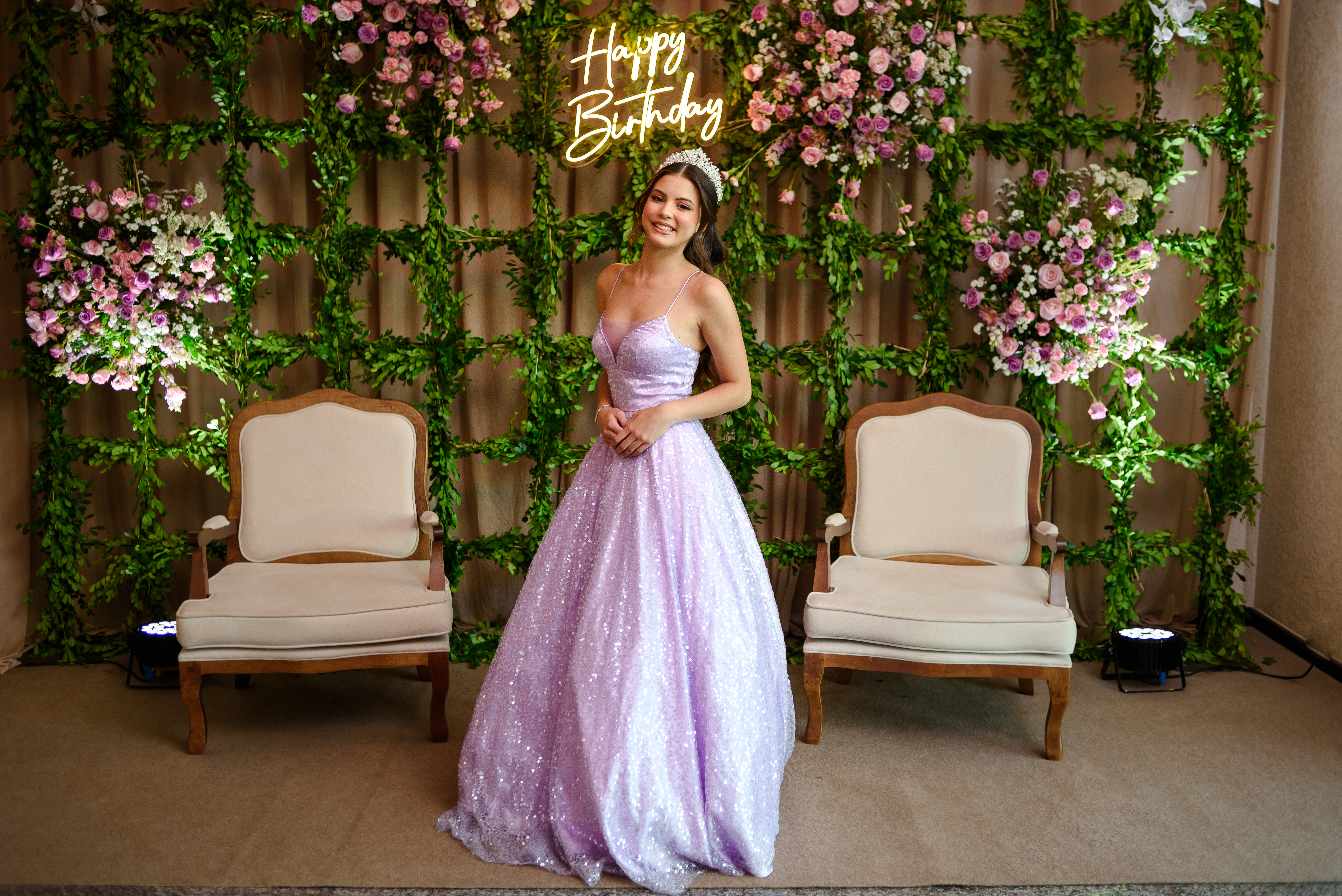 Nosso objetivo é proporcionar tranquilidade para a família e permitir que a debutante aproveite cada instante da sua festa, enquanto nossa equipe cuida de toda a condução e organização do evento.
